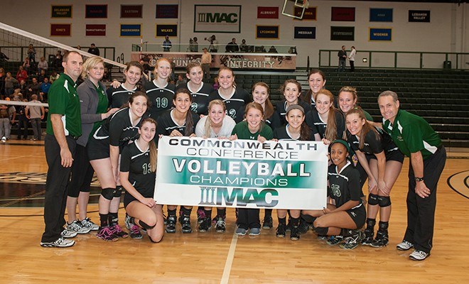 OWINGS MILLS, Md. (Volleyball) – The top-seeded Stevenson Mustangs were pushed to five sets for just the fourth time this season. The Mustangs rallied in the fourth set and held on in the fifth set to defeat the third-seeded Messiah Falcons 3-2 for their third-straight Commonwealth Conference Volleyball Championship.