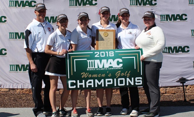 HERSHEY, Pa. (Women’s Golf) – The Alvernia Golden Wolves captured their second Middle Atlantic Conference (MAC) Women’s Golf Championship on Sunday at the Hershey Country Club East Course. The Golden Wolves’ junior Emily Gilbert also captured her second-straight MAC women’s golf individual title.